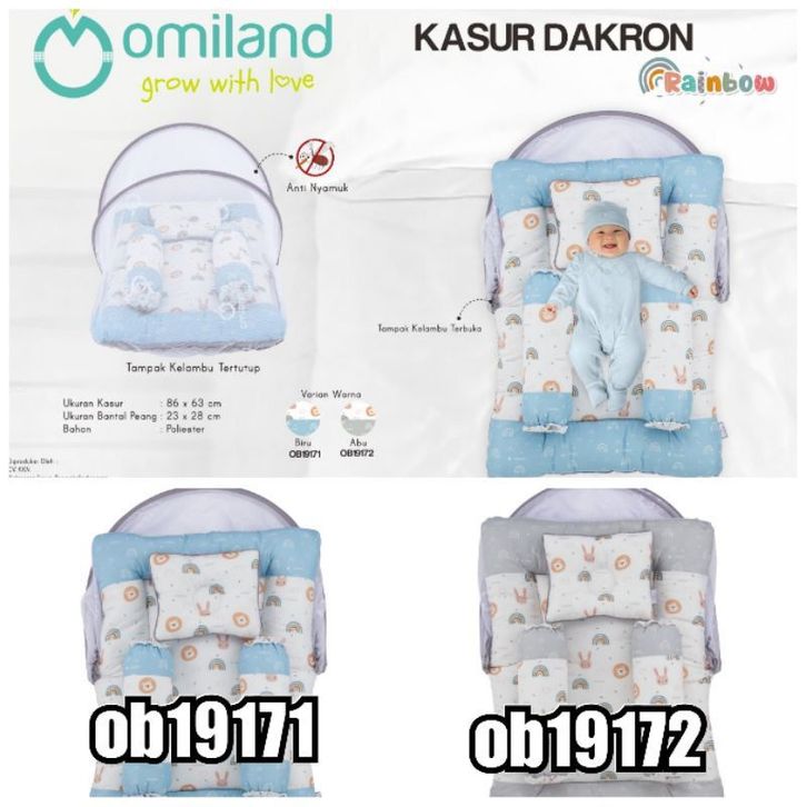 Omiland Kasur Kelambu Bayi Lipat Dakron Set Bantal Peang Guling Seri Sloth Alpaca Rainbow Panda