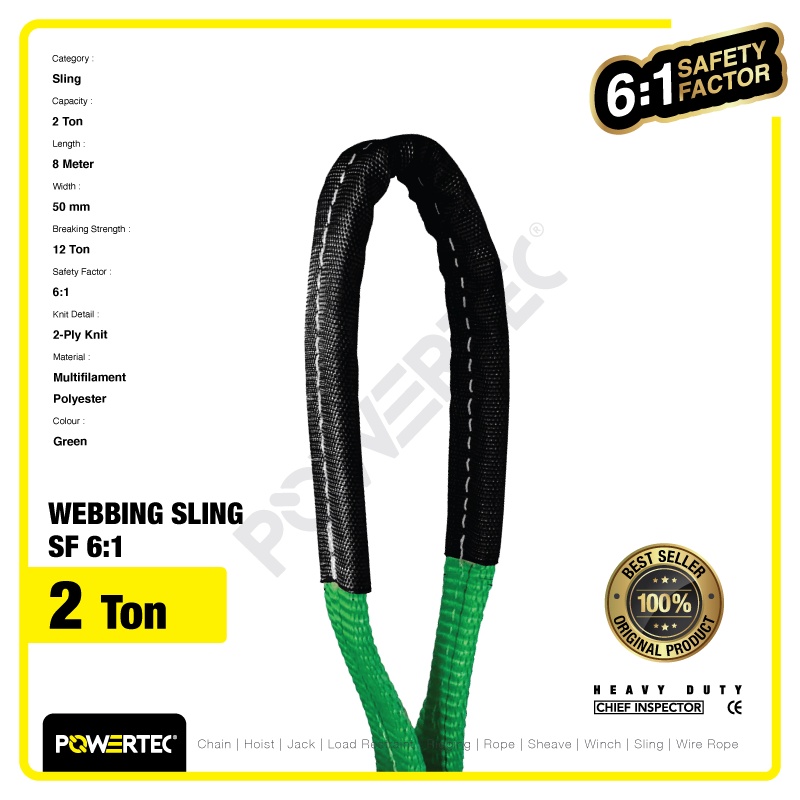 POWERTEC WEBBING SLING BELT / TALI ANGKAT 2 TON X 8 METER DOUBLE PLY