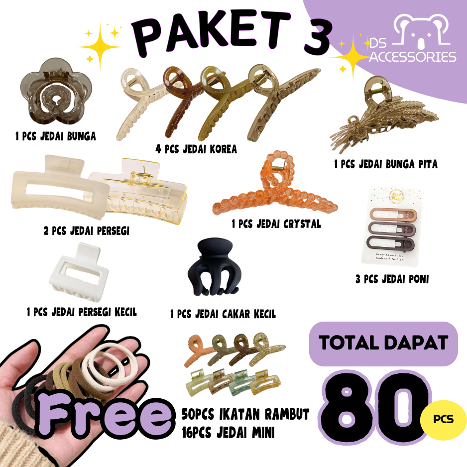 Jedai Rambut Korea Wanita Isi 80Pcs Jepitan Rambut Kekinian Jepit Rambut Bahan Plastik / Jedai Rambut Aesthetic Paket 3
