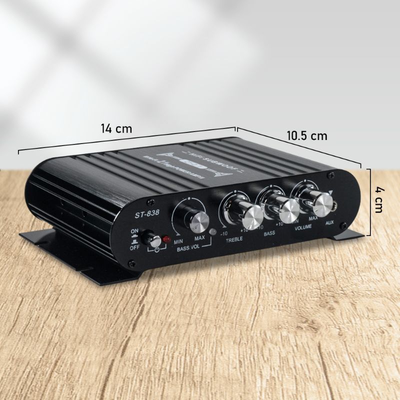 AMPLIFIER BLUETOOTH SUBWOOFER / LVPIN MINI HIFI STEREO AMPLIFIER TREBLE BASS BOOSTER 12V - ST-838 - BLACK
