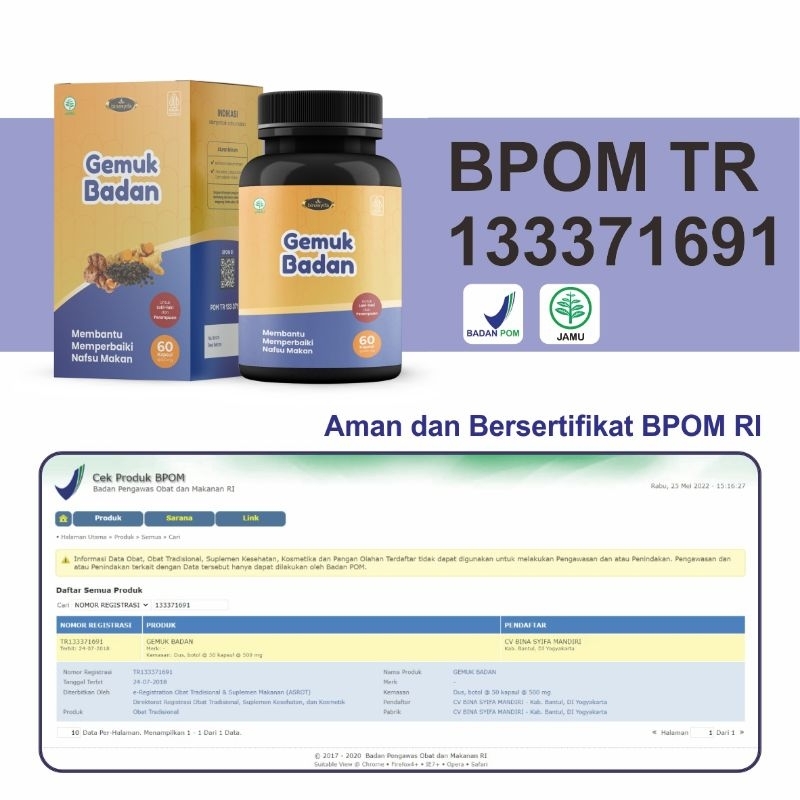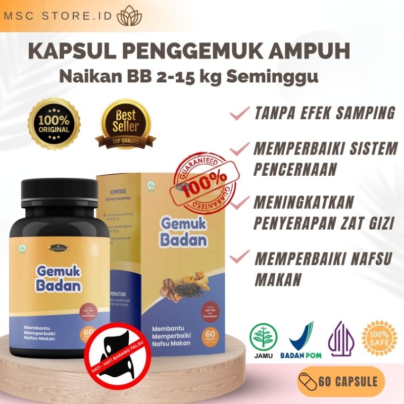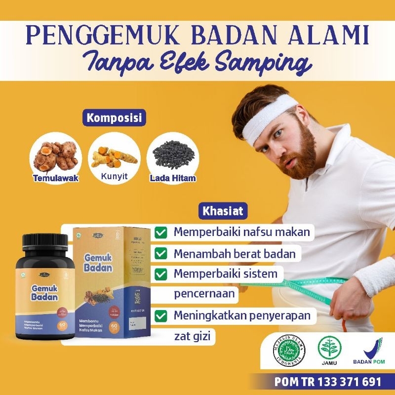 GEMUK BADAN AMPUH NAIK 2-15 KG BPOM - HERBAL ALAMI DAN AMPUH-KAPSUL GEMUK BADAN