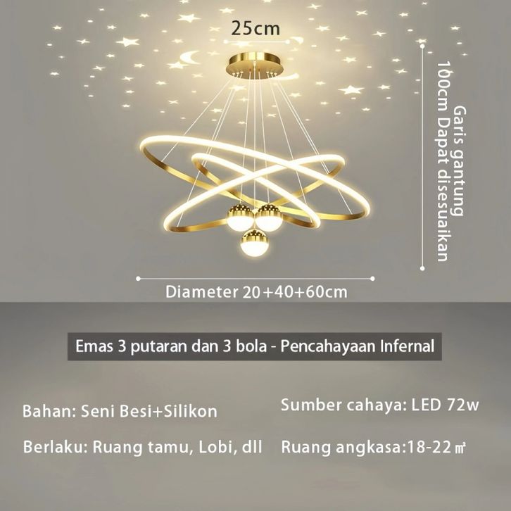 Lampu Hias Gantung Lampu Gantung Ruang Tamu Lampu Kamar Tidur LED Chandelier Lampu Gantung Langit Berbintang