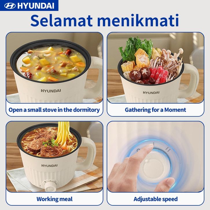 Panci Listrik Serbaguna Anti Lengket Cepat Panas Multifungsional Pot Kukusan Steamer Hyundai 1.5L