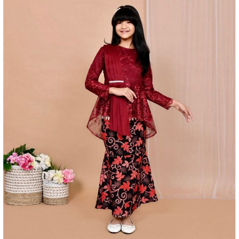 GB-Kebaya Anak Perempuan Kebaya Selendang Modern Setelan Kebaya Pesta Wisuda Anak SD Umur 3-12 Tahun