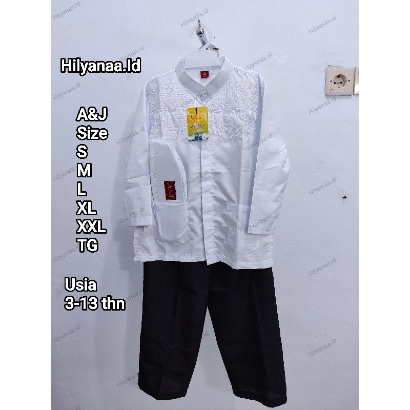 A&J KOKO MUSLIM Anak Hitam Putih Lengan Panjang Usia 3-13 TAHUN