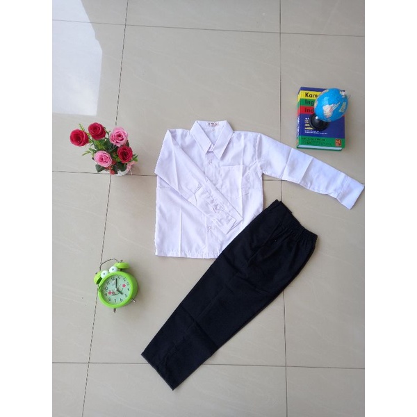Setelan Seragam Sekolah SD MI Hitam Putih Polos Baju Panjang Celana Panjang Laki - HITAM PUTIH POLOS BAJU PANJANG CELAN