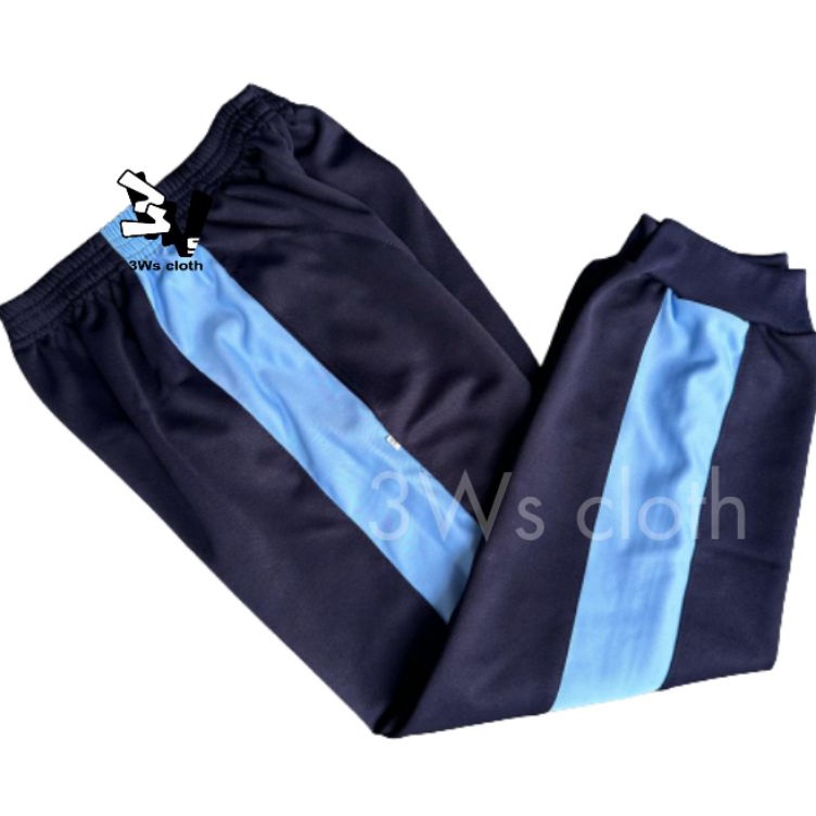 SET. BIRUMU NAVY, CELANA DONGKER STRIP, KAOSSAJA BIRU MUDA
