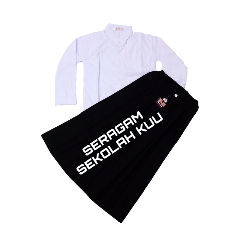 Setelan Seragam Sekolah SD SMP MI MTS PUTIH HITAM BAJU PANJANG POLOS ROK PANJANG HITAM PEREMPUAN