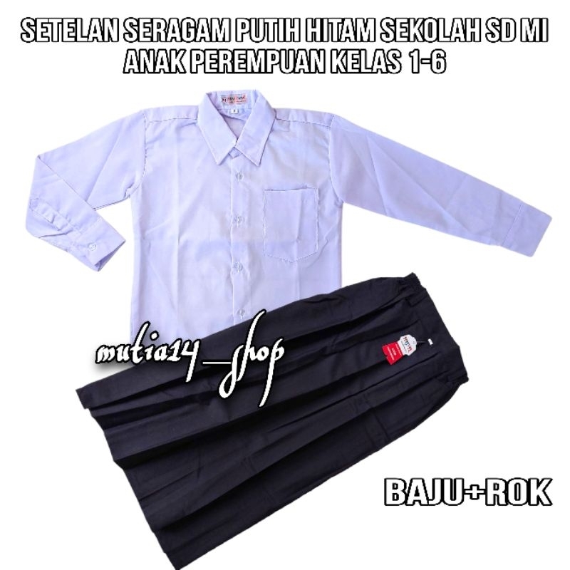 Setelan Seragam Sekolah SD/Mi Putih Hitam Perempuan Lengan Panjang Rok Hitam Panjang Kelas 1-6 SD /paket Lengkap