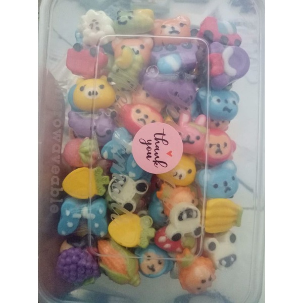 Mix hewan dan buah, Mix binatang laut, Mix donat, Coklat sendal, buah2an mini, emoticon, bikkini bottom mini, mix pita