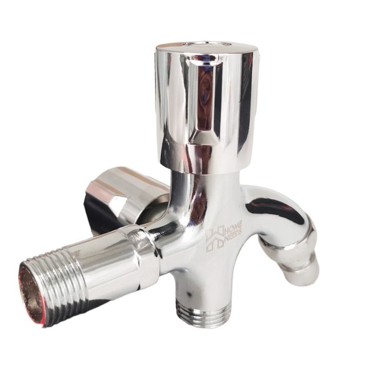 Homeneeds Kran Cabang Shower Kran Double Tancap Tembok Kamar Mandi Engkol Putar JS-20