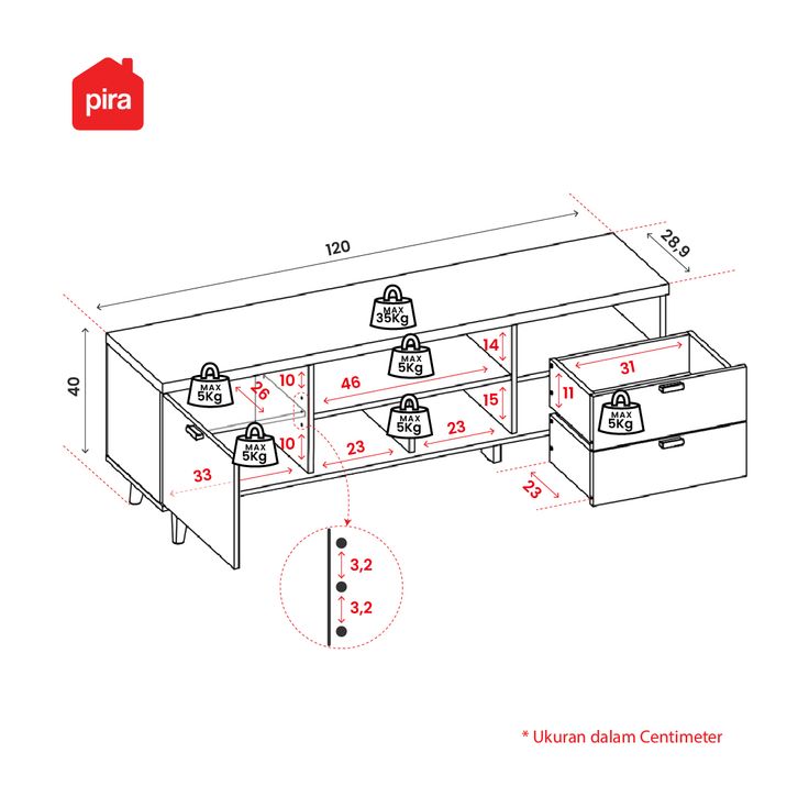 PIRA METROPOLIS OX - ABBA TV120 Meja TV / Rak TV / Lemari TV