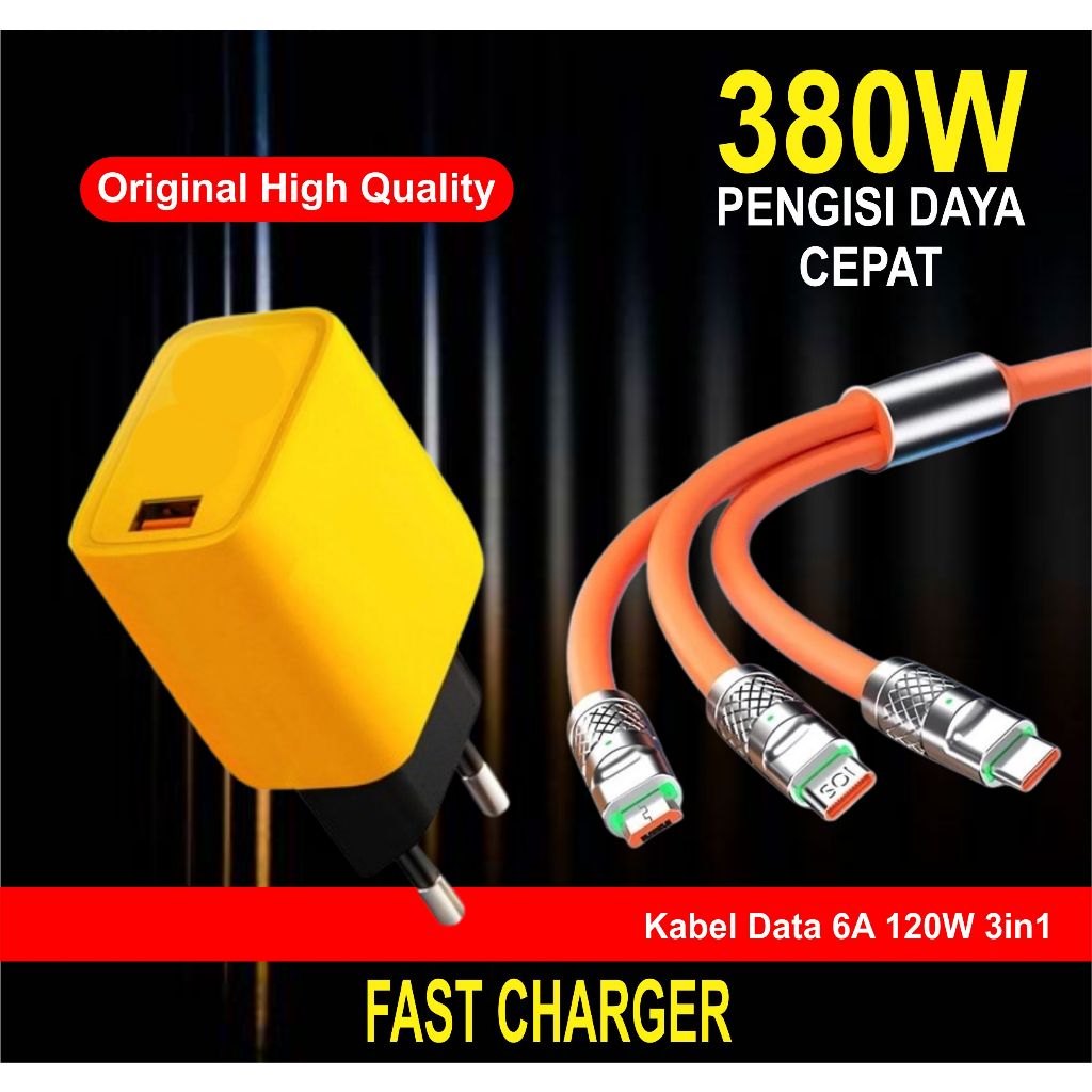 Charger 380W Batok 131 + Kabel Data 3in1 (Micro, Type C, & Lightning) Pengisian Daya Cepat 6A Super Quick Charging