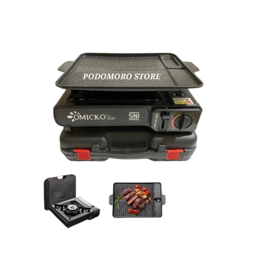 PAKET KOMPOR PORTABLE OMIKO 2 IN 1 / KOMPOR BBQ PORTABEL PLUS COVER SNI