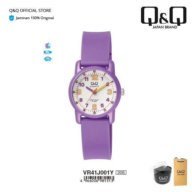 Q&Q Jam Tangan Anak Analog Rubber - VR41 VR41J Tahan Air 10 BAR