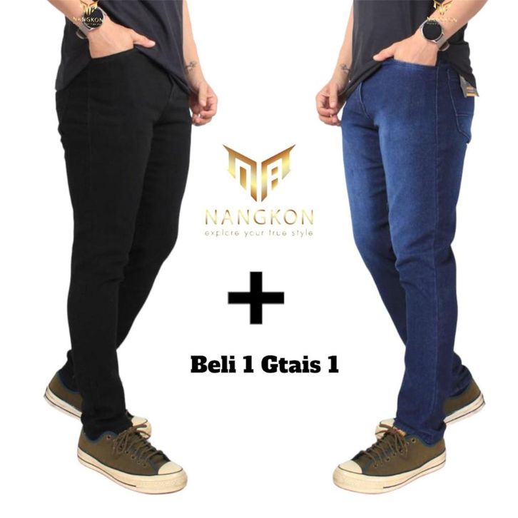 APL STORE - Celana Jeans Pria Beli 1 Gratis Satu Celana Pensil Cowok Bahan Melar Slimfit Premium