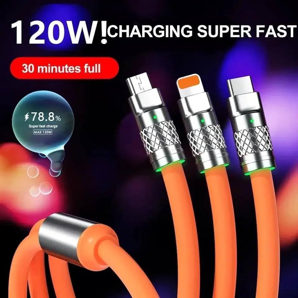Charger 380W Putih Fast Charging + Kabel Data 3in1 (Micro, Type C, & Lightning) Pengisian Daya Cepat 6A Quick Charging