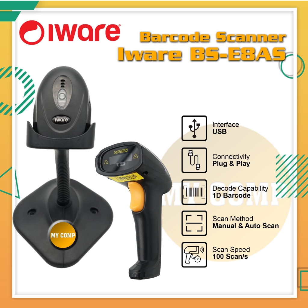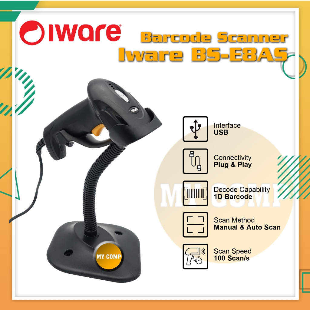 Scanner Bare Iware BS-E8AS 1D Auto Scan USB With Stand