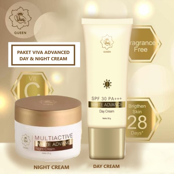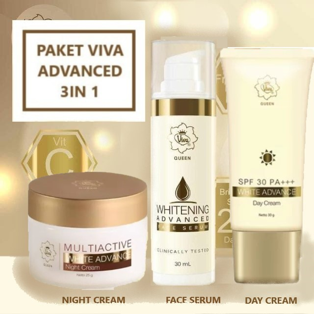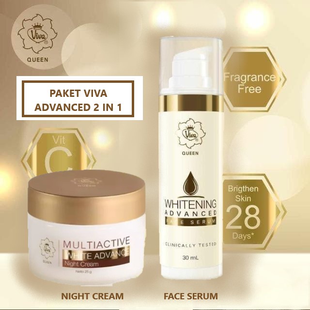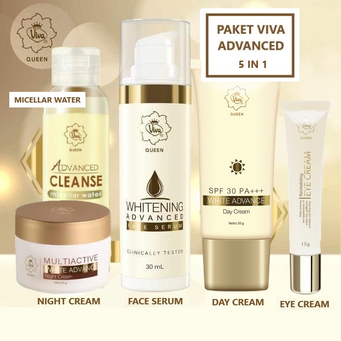 PAKET VIVA Queen Whiteneng Advanced Night Day & Night Cream | Fe Serum | Eye Cream | Micellar Water All Skin