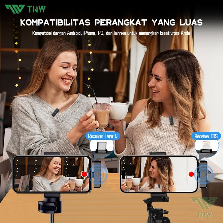 TNW A21 Wireless Microphone Mic Clip on Dual Mikrofon Lavalier Microphone Wireless Mikrofon Ipone dan Charging Case Mic