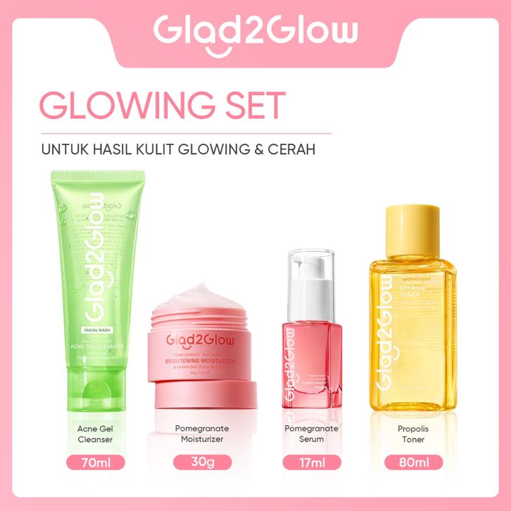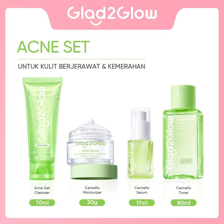 GLAD 2 GLOW - G2G ORIGINAL OFFICIAL STORE - 4PCS BUNDLE 4IN1 PAKET SKINCARE - SERUM - PEELING SOLUTION - ACNE - GLOWING