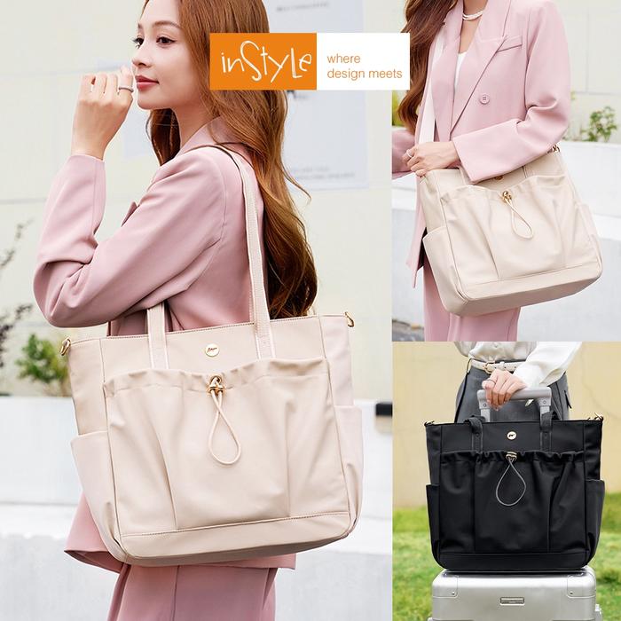 Tas Laptop Bahu Selempang Tote Bag Nilon Oxford Wanita Korean Style Anti Air (T14-052-5586) - Hitam, 14 inch