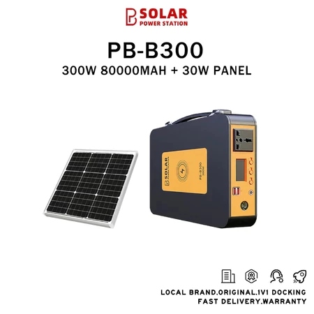 PB SOLAR POWER STATION PORTABLE 220V-250V 300W 256WH 80000MAH TENAGA SURYA POWERBANK SELULER UNTUK BERKEMAH POWER GENERA