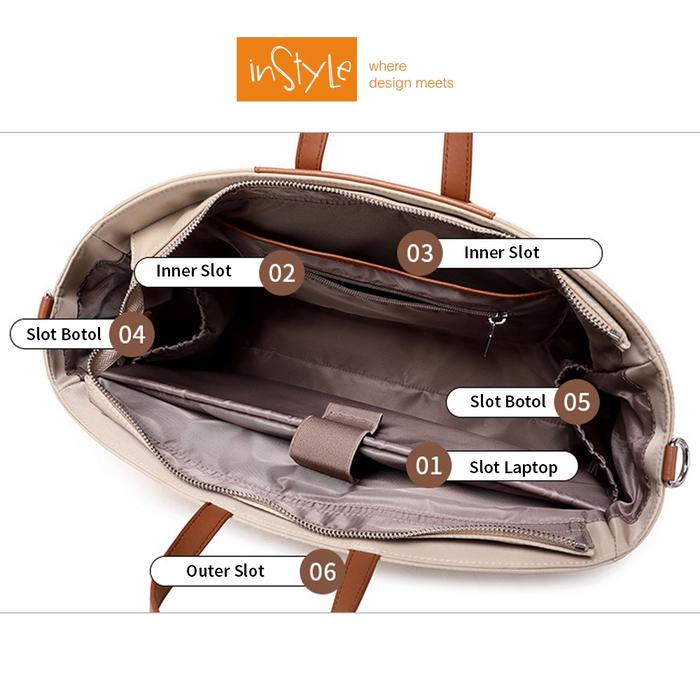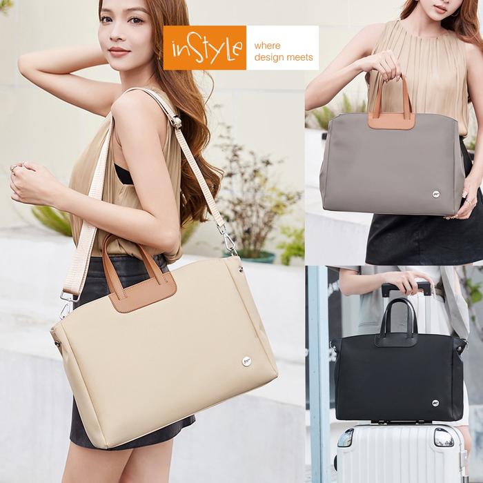 Tas Laptop 14 15 inch Bahu Selempang Nilon Oxford Anti-Air Wanita Korean Style Bag (T14-023-5536) - Abu, 14 inch