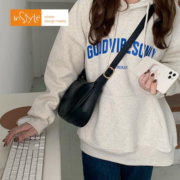 Tas Tangan Bahu Selempang Kulit Sintetis Wanita Handbag Korea Style (T2-044) - Hitam