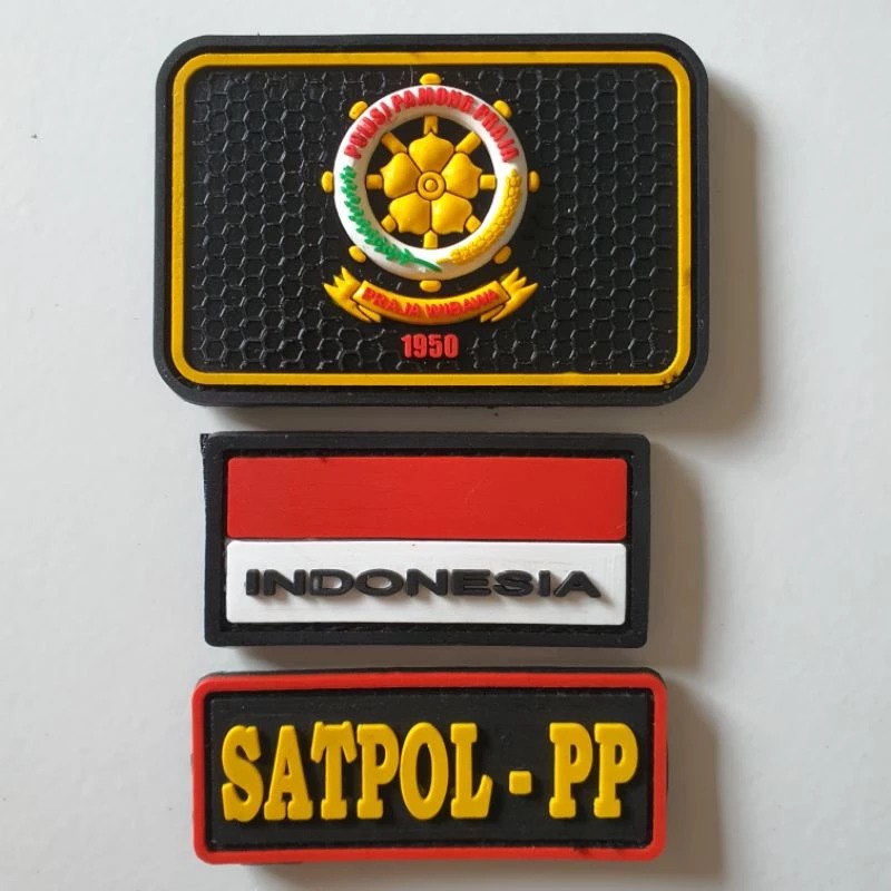 Patch Rubber Satu Set Logo POL PP 3D + Tulisan Satpol PP + Bendera Kecil Indonesia/3Tempelan