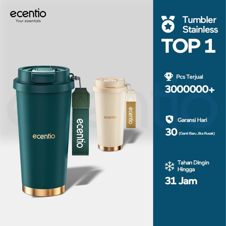 Ecentio Tumbler Minum Premium 530ml Tahan Dingin 24 Jam Botol Stainless 316 Portable