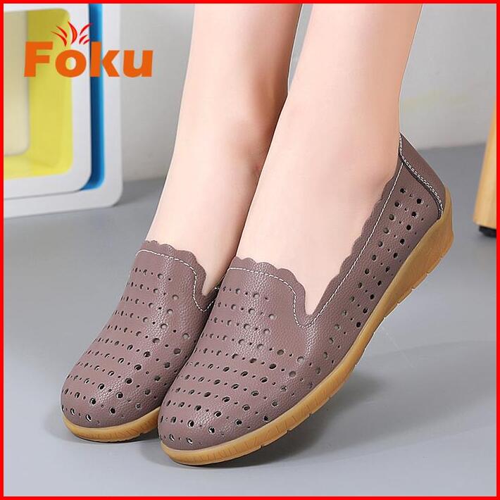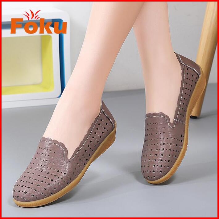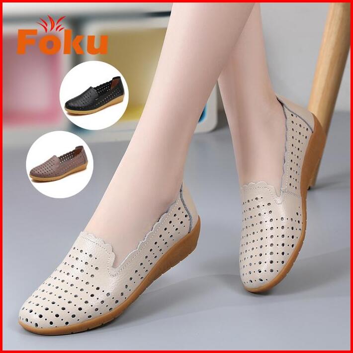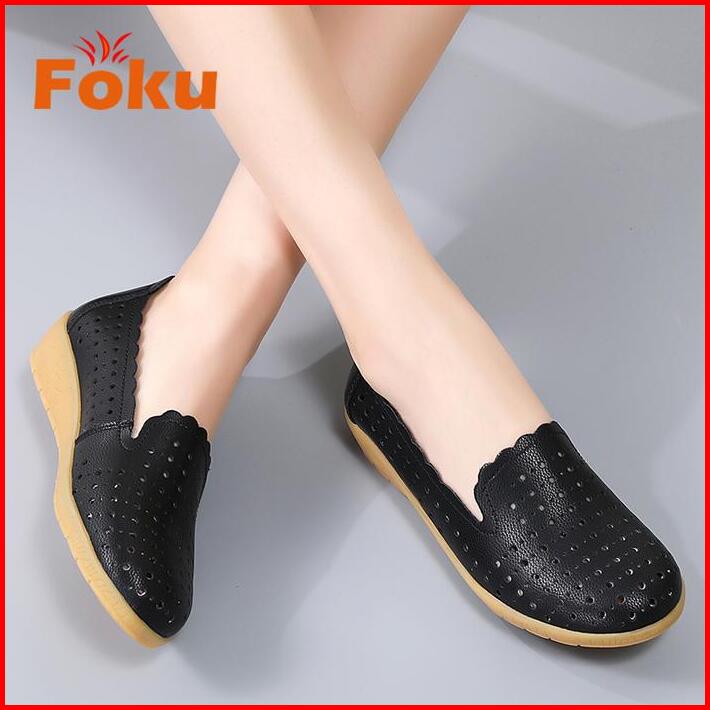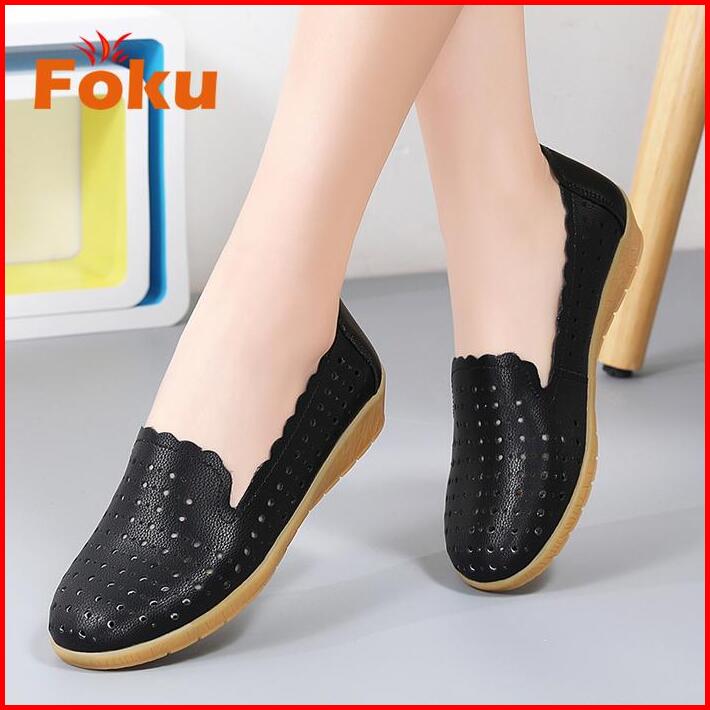 Foku Sepatu Flat Wanita Sepatu Kulit Wanita Flatshoes Karet