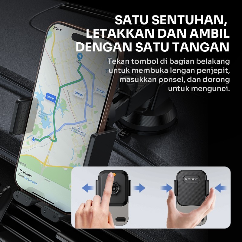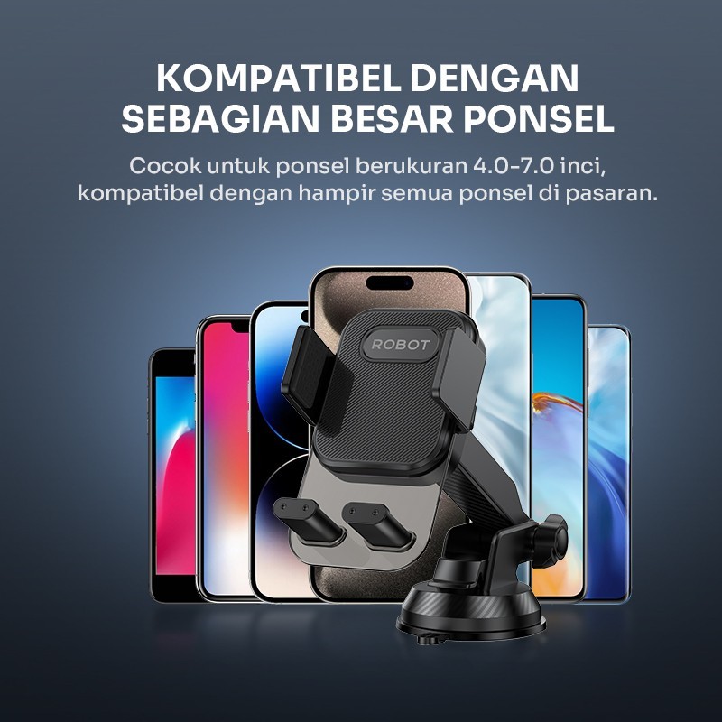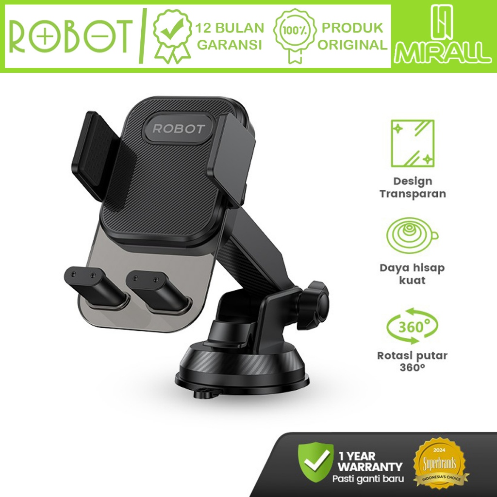 ROBOT RT-CH18S Center Console Car Holder Mobil Transparant Design Rotasi 360 Derajat Suction Cup Phone Holder Mobil Peny