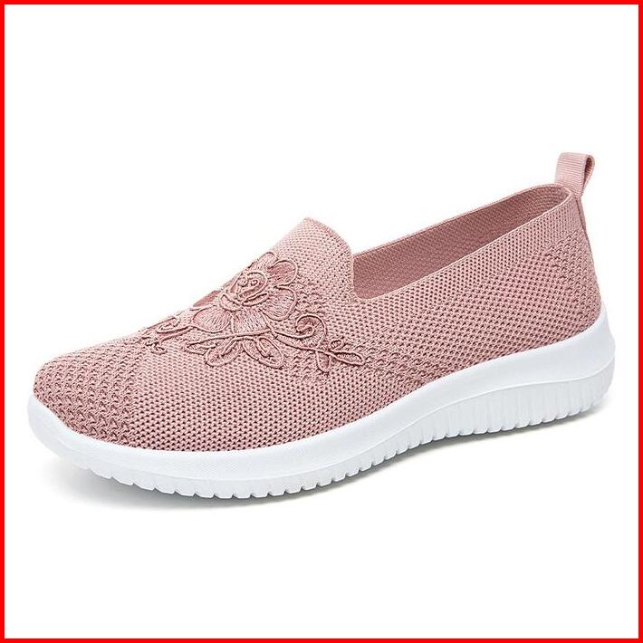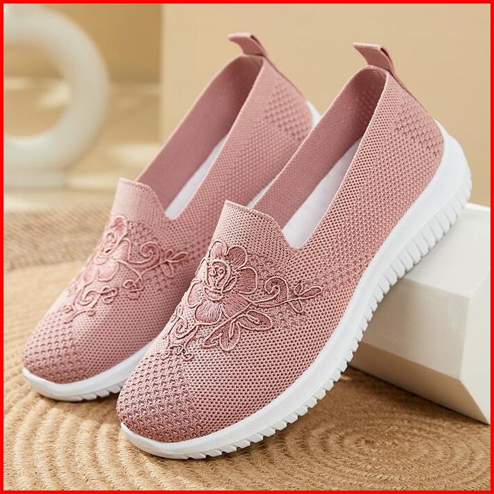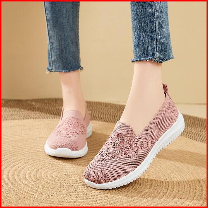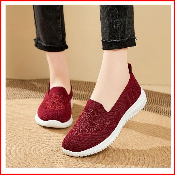 Sepatu Wanita Import Sneakers Rajut Slip On Sol Flat Karet Hitam