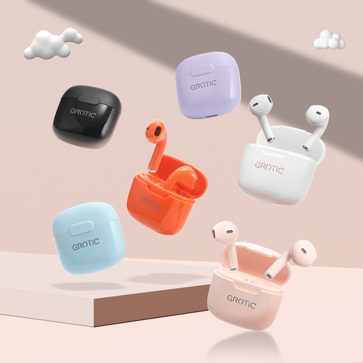GROTIC Headset Bluetooth TWS Macaron Earphone Wireless Stereo Bass HiFi Music Earbuds A2