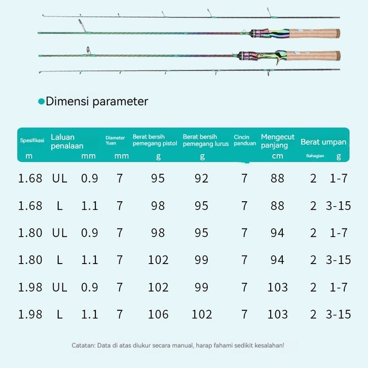 CALDARI 1.98M Joran Pancing Set 5.2:1 Gear Ratio Reel Pancing Spinning Fishing Reel Combo