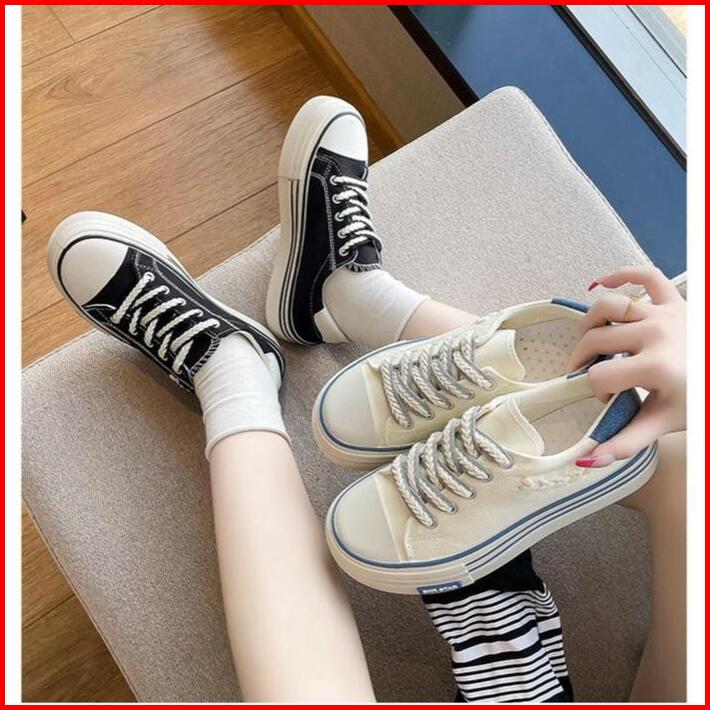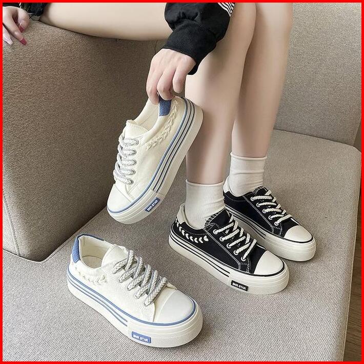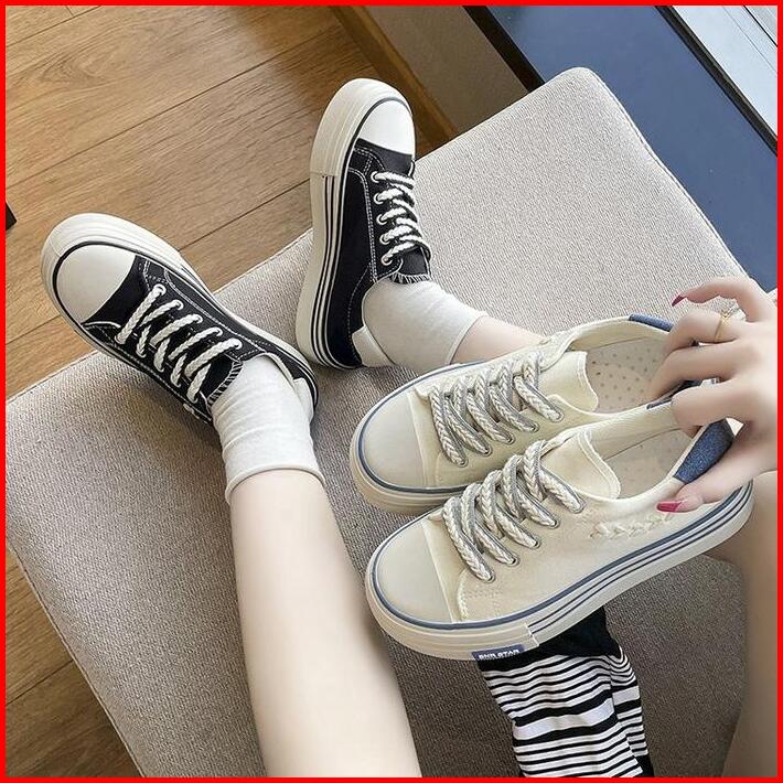 Moodstyle Sp1849 Sepatu Sneakers Sol Tebal Tali Casual Kanvas Wanita Sport Trendy Korea Nyaman Shoes