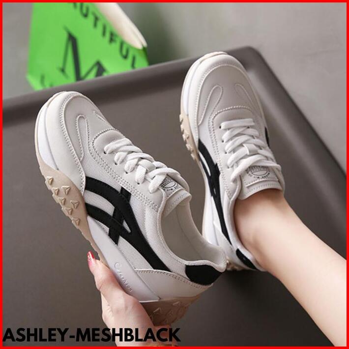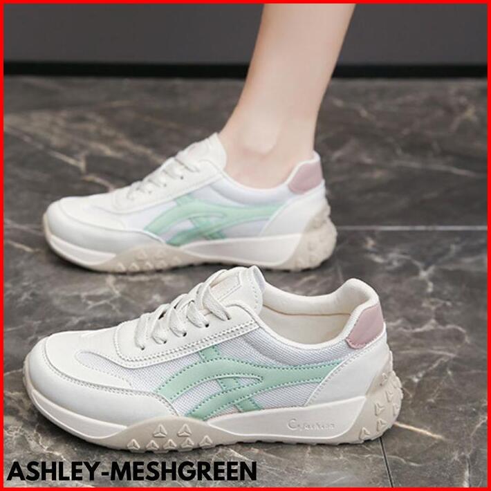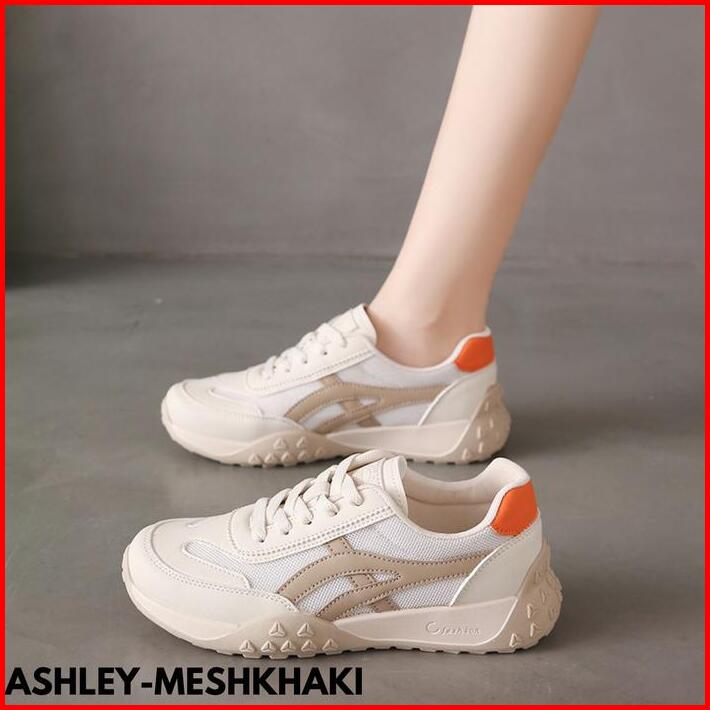 Sepatu Sneakers Wanita Keren Model Kasual Nyaman Dipakai Travel Anti Slip Bahan Pu Mesh Bagus Ashley