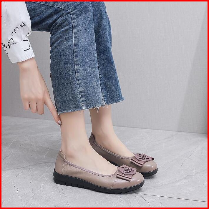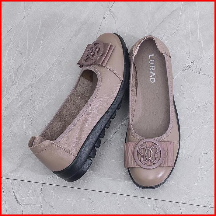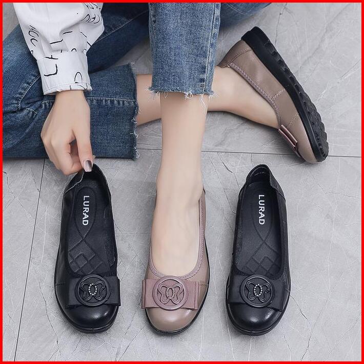 Lurad Sepatu Slip On Wanita Sepatu Kerja Cewek Bahan Kulit Empuk 1865