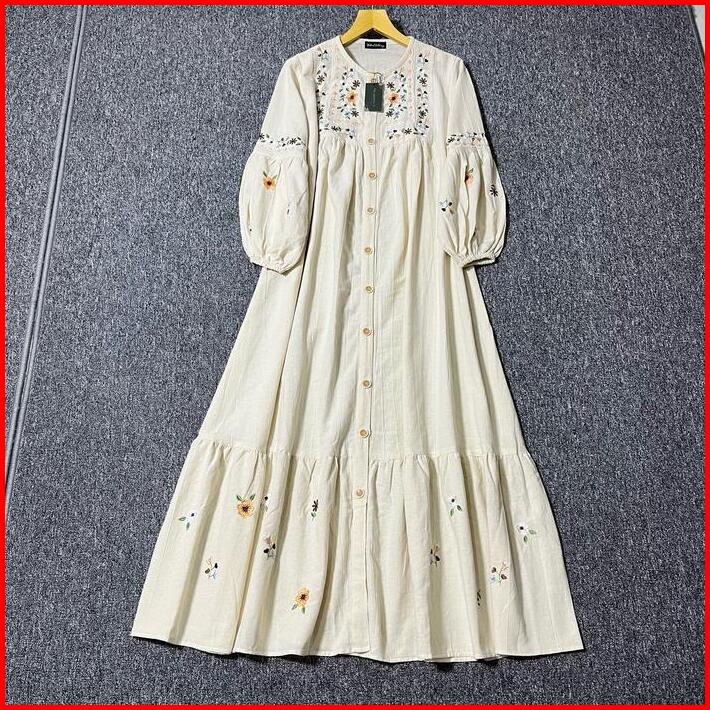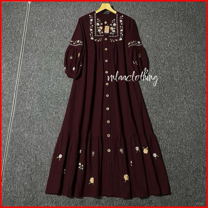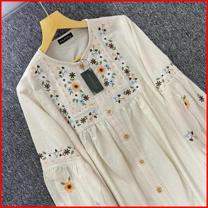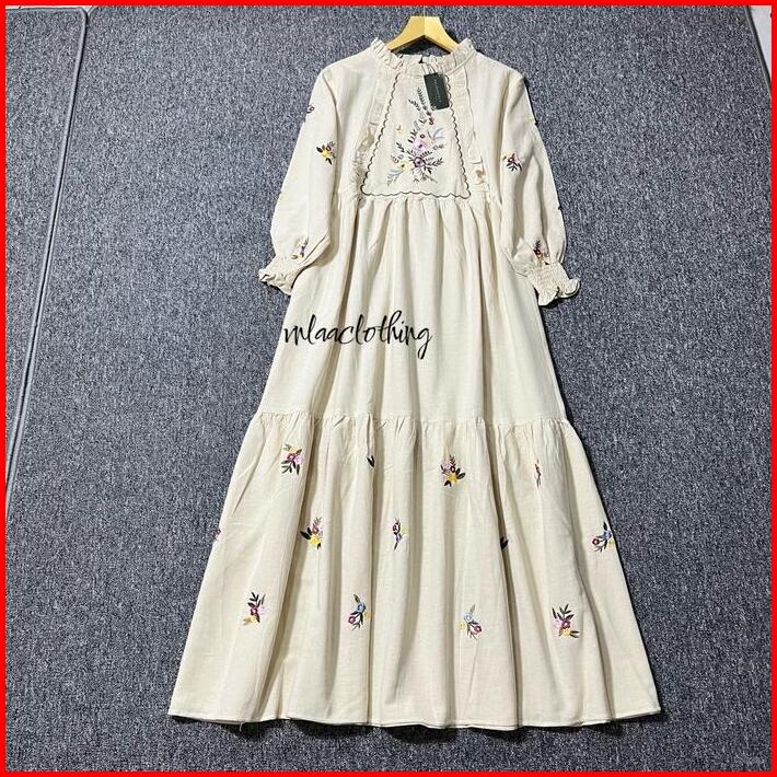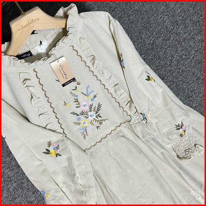 Kayla Dress Cotton Linen Bordir Ready Langsung Kirim Dress Linen Bordir Premium Dress Bordir Terbaru