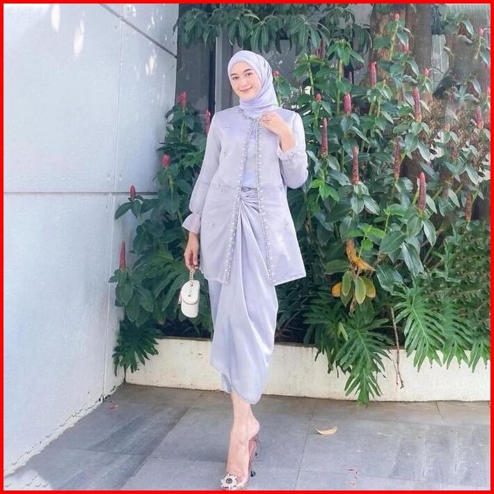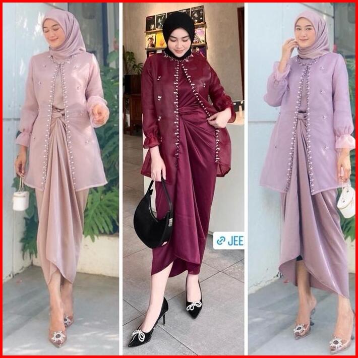 Jeema One Set Inner Outer Organza Rok Lilit Muslim Kebaya Wanita Pesta Kondangan Bridesmaid Wisuda Payet Mutiara