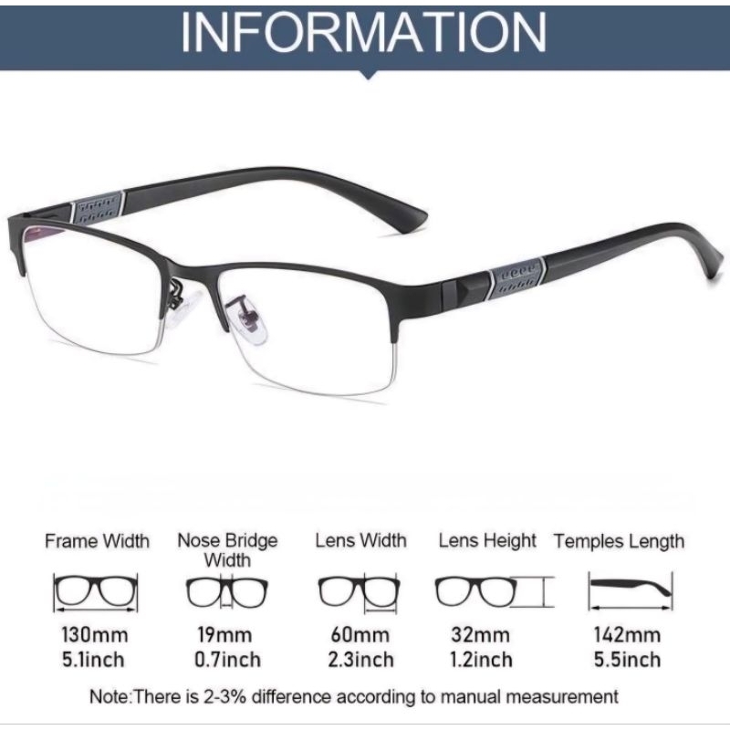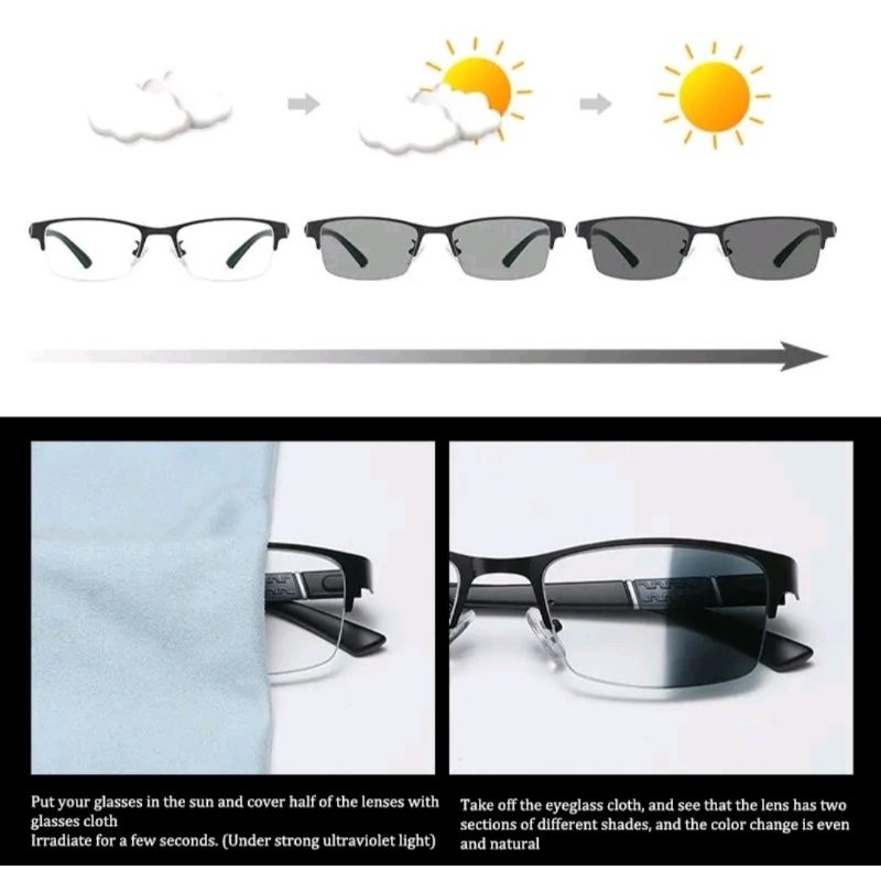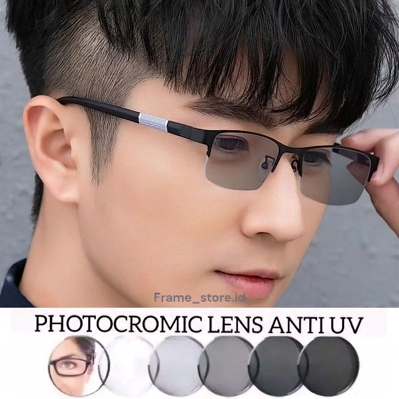 Kacamata Photocromic Lensa Anti Radiasi Standar Optik Frame Gantung / Kaca mata Minus Plus Progresif Bluecromic Unisex (
