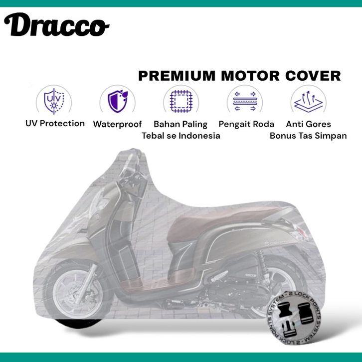 Cover Motor/Jas Motor/Cover Motor Waterproof DRACCO – Sarung Motor Tebal Anti Panas Hujan UV Protection Free Tas Simpan