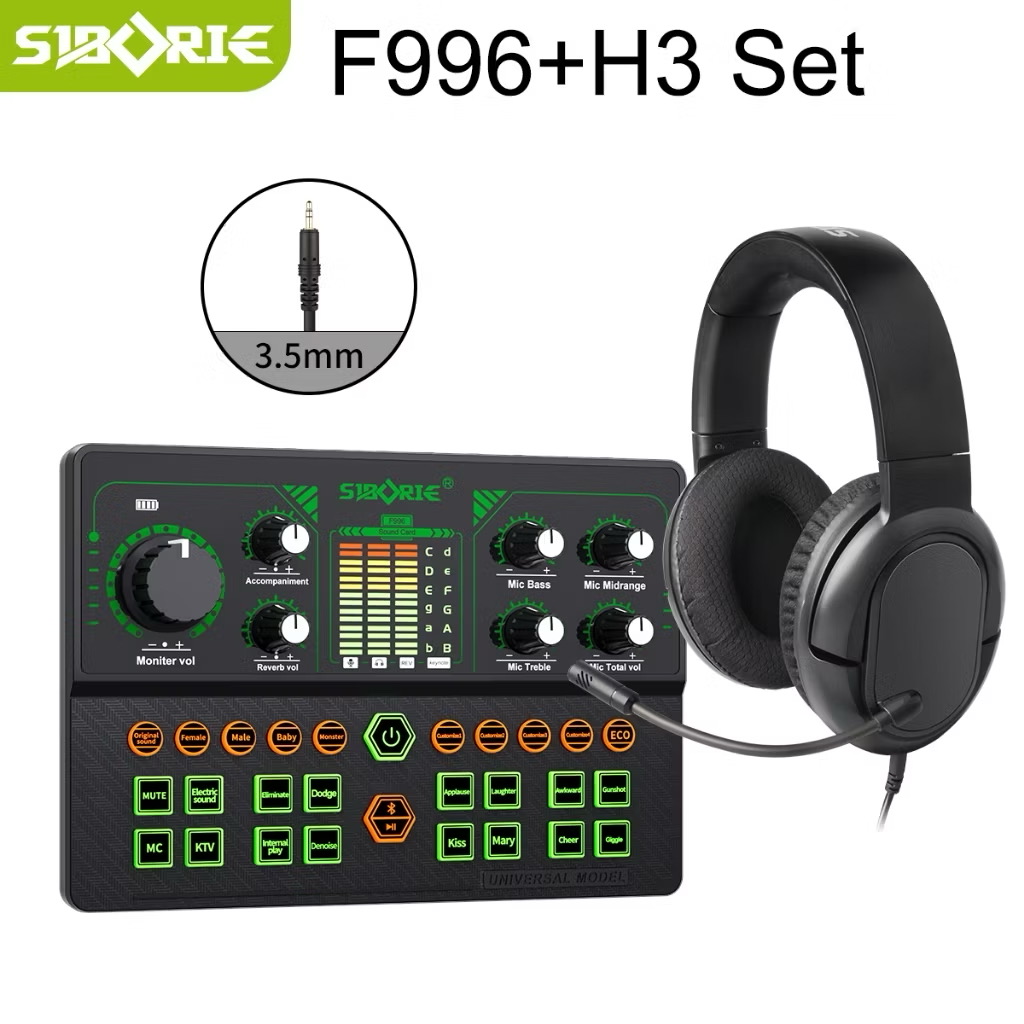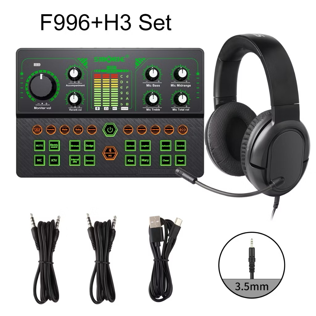 Siborie F996 Soundcard+H3 headphone full set soundcard headphone paket lengkap HIFI sound quality karaoke