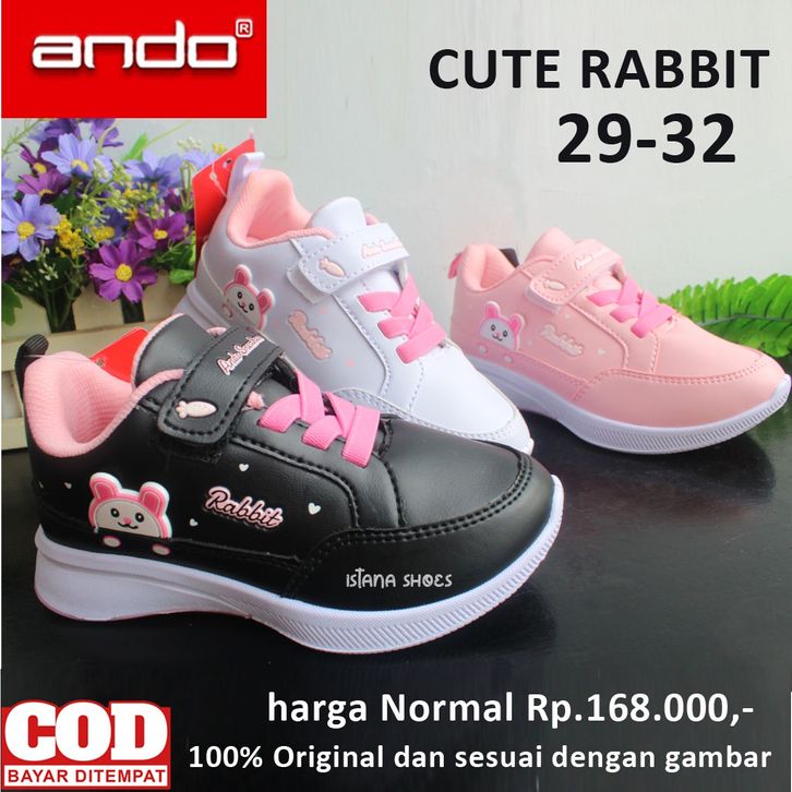 BISA CICIL SEPATU SEKOLAH ANDO CUTE RABBIT SEPATU ANAK PEREMPUAN TK PAUD SD KETS PEREKAT PAUD TK SD