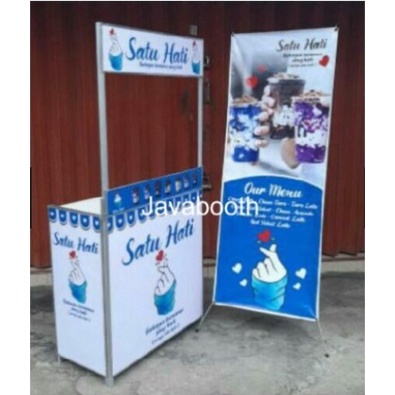GRATIS ONGKIR BOOTH PORTABLE GEROBAK LIPAT MEJA LIPAT BONUS PALANG TENGAH DAN PAPAN MENU MEJA BAZAR MEJA J