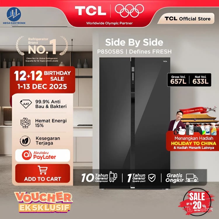 [Mall] Kulkas 4 Pintu Besar Kapasitas 394L P480CD Big Capacity Twin Eco Inverter AAT Gen2 Natural Eco Freshness No Frost