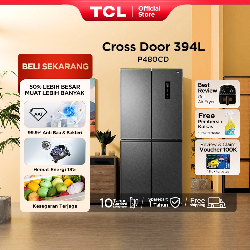 KULKAS 4 PINTU TCL KAPASITAS 394L P480CD BIG CAPACITY TWIN ECO INVERTER AAT GEN 2 NATURAL ECO FRESHNESS TOTAL NO FROST