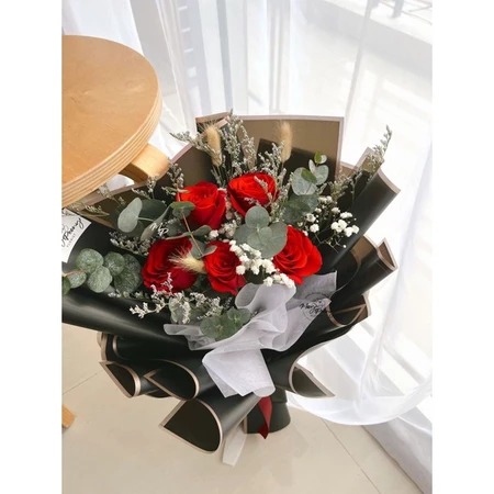 bucket Fresh Rose Bouquet 5 Stem - Buket Bunga Mawar Asli Buket Fresh Flower Buket Wisuda Flower Bucket Florist Hadiah U