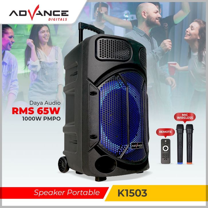 Speaker Advance K-1503 Speaker Bluetooth Portabel 15 inch Free 2 MIC Bisa Dipasang Di Tripod Speaker Aktif Spiker blutut